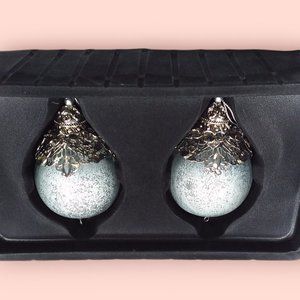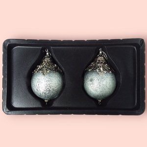 Trimsetter Christmas Ornaments Blown Glass Round Brushed Silver Fancy Gems NIB
