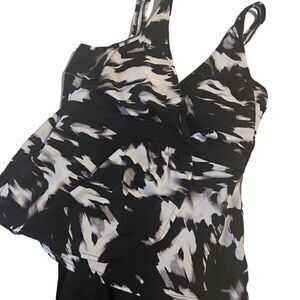 Trimshaper Black White Print Slimming Flowy One Piece Bathing Suit Size 10