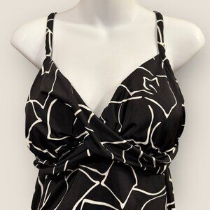 Trimshaper Womens Black and White Tankini Swim Top Adjustable Straps Sz 14 Swim