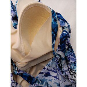 Trimshaper Womens Plus 20W High Keyhole Neck Ruched One-Piece Swimsuit Floral