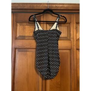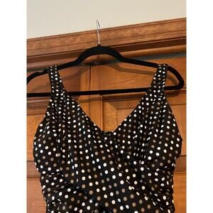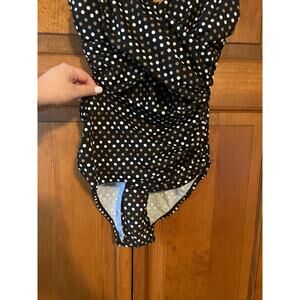 Trimshaper Women's Polka Dot One Piece Wrap Swimsuit Sleeveless Black/White 10