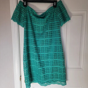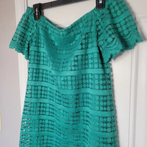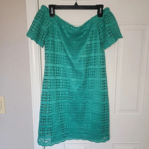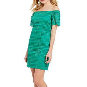 Trina Trina Turk Emerald Lace Off The Shoulder Mini Shift Dress Size S