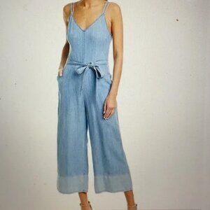 Trina Turk 10 Light Wash Chambray Linen Lyocell Belted Jumpsuit
