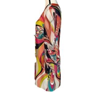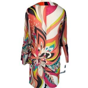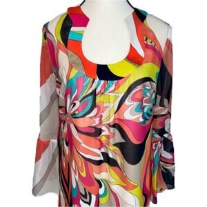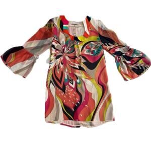 Trina Turk 100% Silk Abstract Print Bell Sleeve Mini Dress Size 2, Small Flaw