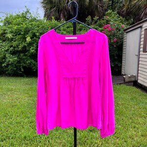 Trina Turk 100% Silk Pink Balloon Sleeve Tunic Top Size L