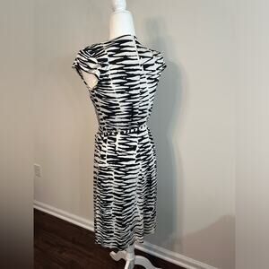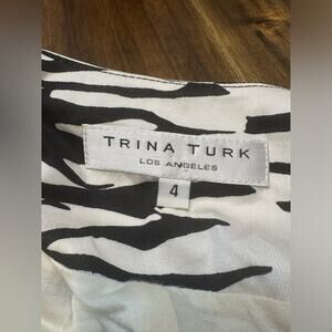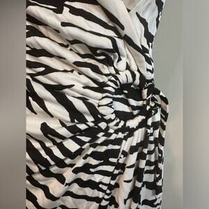 Trina Turk 100% Silk Ring Closure Wrap Dress Zebra Print Black/White