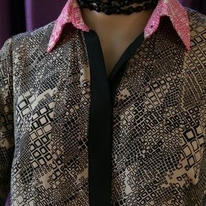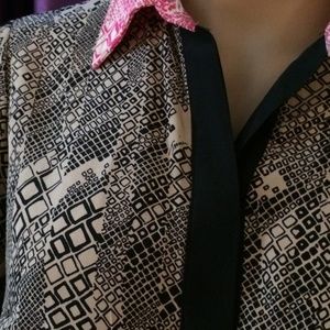 Beautiful 100% Silk top by Trina Turk, size petite. Long sleeve, in very good condition