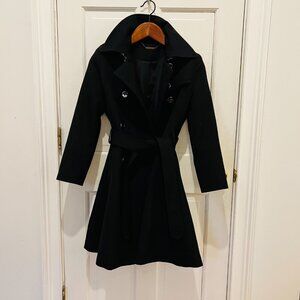 Trina Turk 100 % Wool Trench Coat Black Size 10 EUC