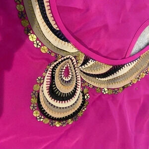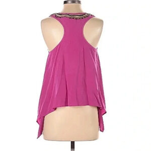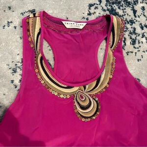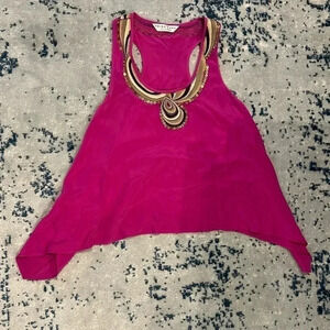 Trina Turk 100% silk hot pink racer back flowy top sequin embellished neckline