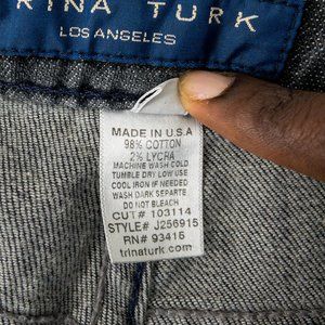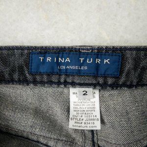Anthropologie Y2K Trina Turk mid-weight stretchy premium denim jeans. She doesn't make jeans any more so these are a cool tbt piece to have. Pockets, lowrise bootcut pants - super soft in perfect gray color. EUC.