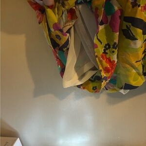 Trina Turk 2 colorful Feminine Tropical Silk Romper Shorts Off Shoulder Pocket