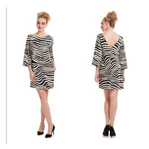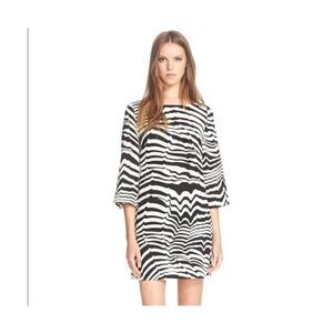 Trina Turk 4 Statement Sleeve Zebra Print Mini Dress Black White Psychedelic