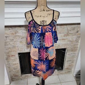 Trina Turk 60s 70s vibes floral Viola Cold Shoulder Dress coverup size 2