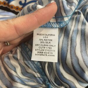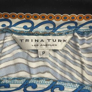 We are RESELLERS. We do not know the full history of the items we sell, and we do not model items. Brand: Trina Turk