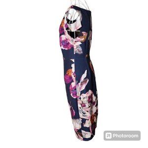 The fitted midi dress from Trina Turk has a zipper closure, cutout on sleeves and boat neck.