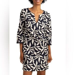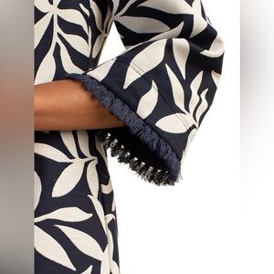 Trina Turk Alena Printed fringe cuff Shift Dress Navy Blue & White 33445