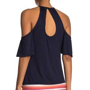 Cold shoulder sleeves create the breezy look of this Trina Turk top.