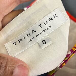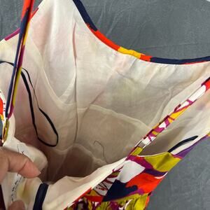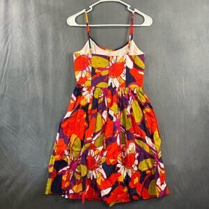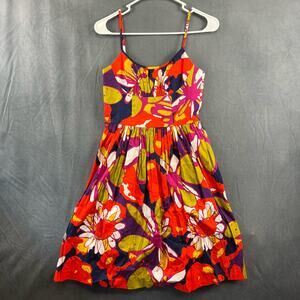 Title: Trina Turk Amalfi Dress Tomato Spaghetti Strap Pleats Abstract Floral Mini Dress