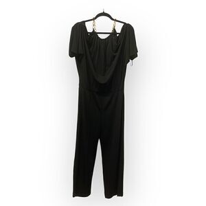 Trina Turk Anthropologie Black Jumpsuit Gold Chain Cold Shoulder M