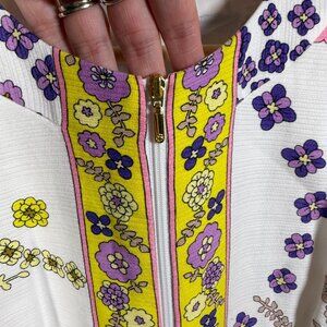 Trina Turk Arboretum Full Zip Mini Dress Size 6 Floral Retro Mod Palm Beach