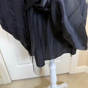 Materials: 100% polyester, 100% silk trim, 100% acetate lining, 100% polyester tulle.
