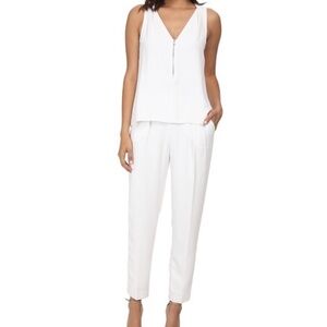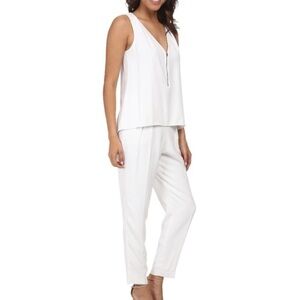 Trina Turk Banning White Crepe Jumpsuit V Neck Zipper Sleeveless White Size 6
