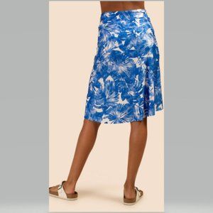 Be ready from day to night with this tropical blue skirt in stretch knit. This lightweight cover-up skirt is chic, feminine, and just what you need in your summer swim wardrobe.