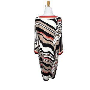 Trina Turk Beige Black White Slip On Lunar Caftan Dress Size Large Womens