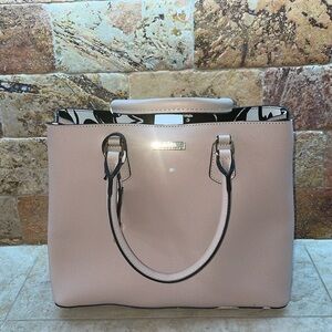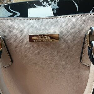 Trina Turk Beige PVC Structured Tote Bag Black White Pink Interior Gold Hardware