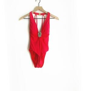 Trina Turk Bijou Orange Bejeweled V Plunge Swimsuit - Size 2