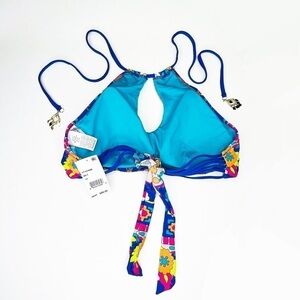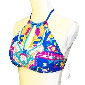 Trina Turk Bikini Top High Neck Tapestry Design Size 12 Halter Keyhole New NWT