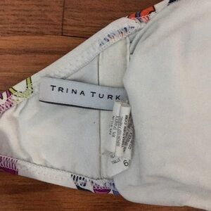 Trina Turk Bikini Top. Has removable padding and a metal center piece detail. Ties in back. Great condition. Size 6.