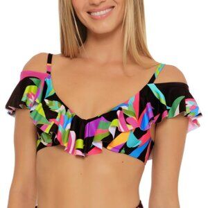 Trina Turk 'Birds Of Paradise' bikini top featuring ruffled trim and a supportive underwire construction.