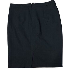 This black pencil skirt offers a polished look with its button-front design and tailored fit. Crafted with a blend of materials for comfort and durability, it’s suitable for professional settings.