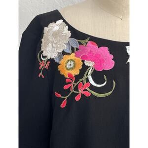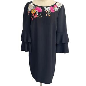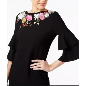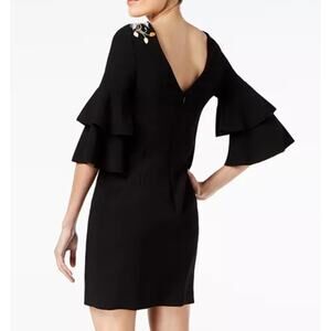 Trina Turk Black Embroidery Ruffle Sleeve Dress Back V