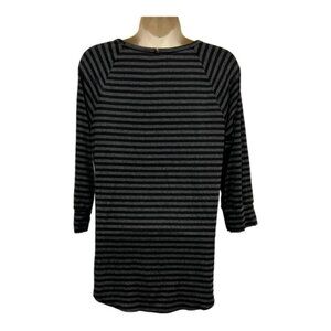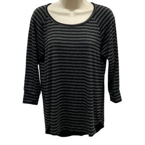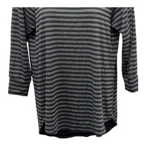 Trina Turk Black Gray Striped 3/4 Sleeve Top Medium