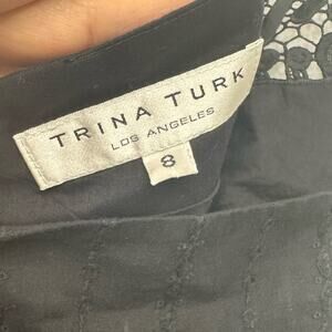 Trina Turk Black Halter Eyelet Dress Womens 8 A-Line 100% Cotton Minimalist