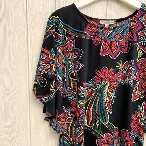 Trina Turk Black Multicolor Kimono Sleeve Mini Dress XS