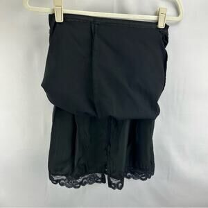 This elegant black pencil skirt is perfect for any occasion. Its sleek design offers a sophisticated look. Pair it with your favorite blouse for a chic ensemble. Features a built in slip a pockets!