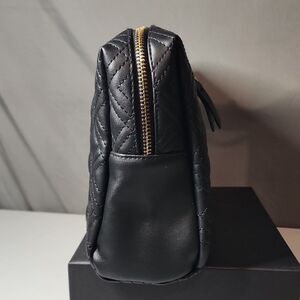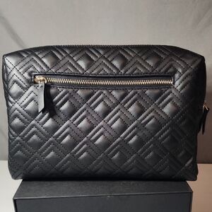 Chic black quilted design. Ideal for beauty essentials. Stylish and functional.