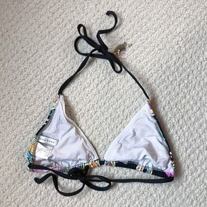Trina Turk Black Retro Print Triangle Bikini Top Size XS 2 4 Tassel
