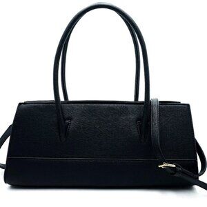 Make a timeless style statement with this sleek Trina Turk Black Structured Satchel. Crafted from high-quality faux leather with a textured finish, this elegant bag features a minimalist design that exudes sophistication. The satchel includes sturdy double handles, a detachable shoulder strap for versatile wear, and a spacious interior perfect for organizing your daily essentials. Whether you're heading to work or a night out, this bag is the perfect accessory to elevate your outfit.