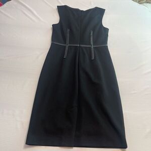 Trina Turk Black Sheath Stretch Lined Dress W/Leather Trim Sleeveless Size 2