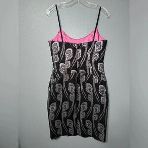 Trina Turk Black & Silver Peacock Lined Cocktail Dress Sz8 Wedding Party Formal