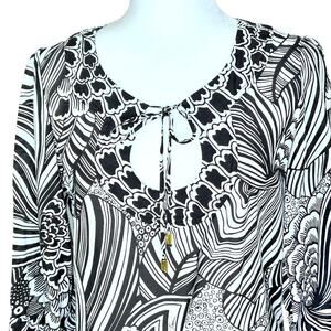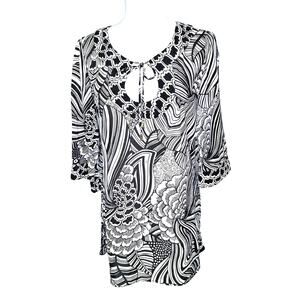 Trina Turk Black White Floral Cotton Silk Tunic Swim Cover Up Mini Dress Medium. 70% Cotton/30% Silk. Measurements taken flat: