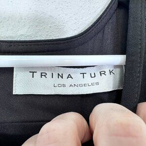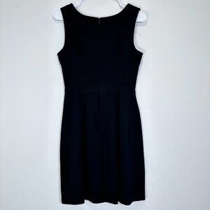 Trina Turk Black Wool Blend Sheath Mini Dress Gold Shoulder Button Career