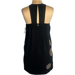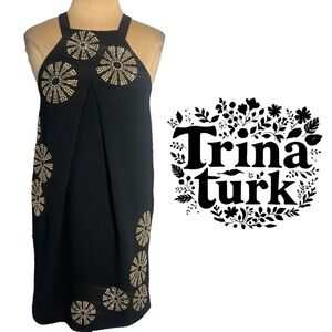 Trina Turk Black retro mod mini dress with gold starburst embellishments Size 4