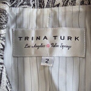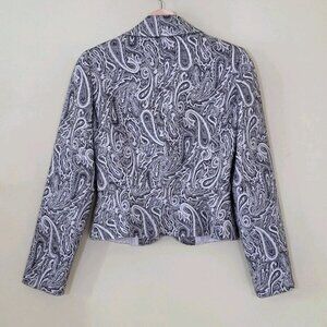 Trina Turk Blazer Womens 2 Gray Silver Paisley LS Cotton Wool Blend Party Boho