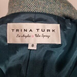 Trina Turk Blue Multi Wool Blend Preppy Acadamia Twee Tweed Blazer
