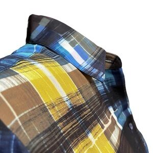 • Blue / black / yellow abstract plaid print